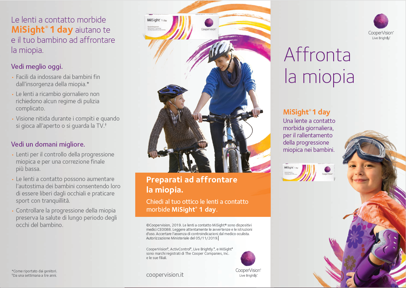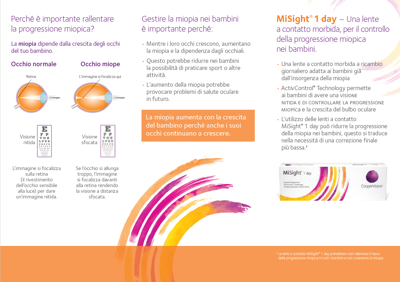- MiSight® 1 day – Una lente a contatto morbida giornaliera, per il rallentamento della progressione miopica nei bambini.